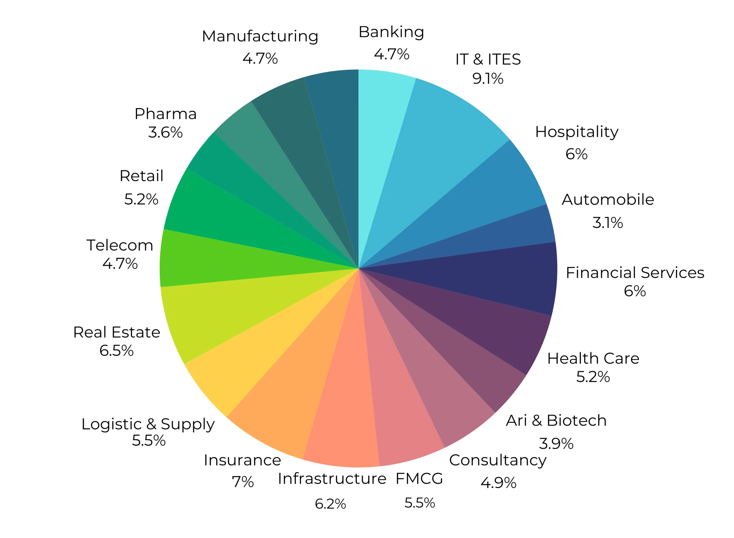 | Consultancy & Services | 19 | Manufacturing | 18 |